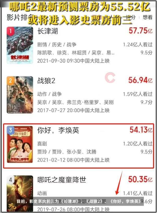 ——淌若《哪吒》好像达到专科购票平台的55亿推测,那《哪吒》就能力先贾玲自导自演的《你好,李焕英》,成为影史票房榜前三了。