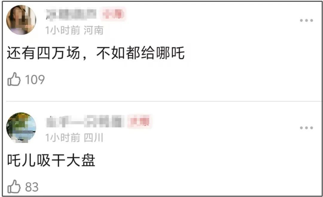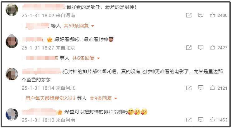 关于《哪吒》越来越高的推测票房,网友响应照旧挺一致的,基本上齐默示认同,又一次运转催影院给《哪吒》排片,还点名票房倒挂最严重的《封神》,条目《封神》把排片让出来给《哪吒》。