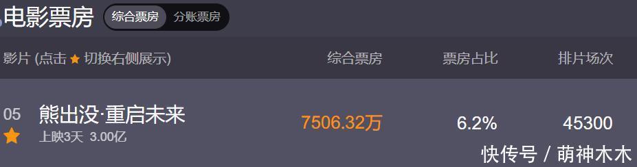 ——《熊出没·重启将来》票房破3亿,施展不如往年,痛心10亿大关;