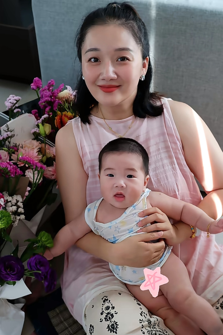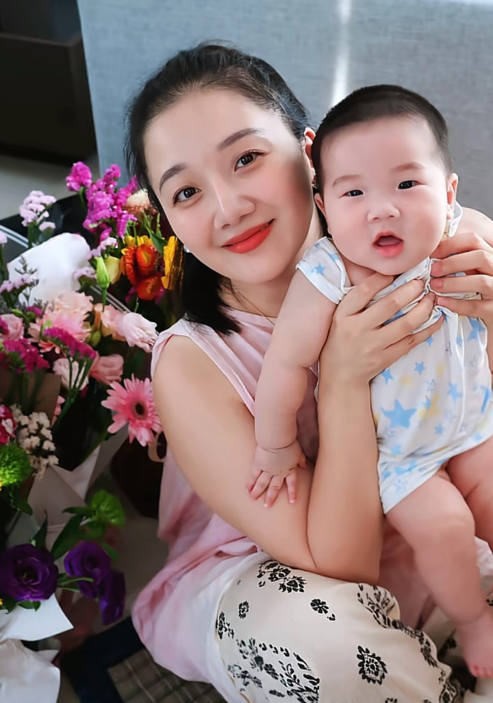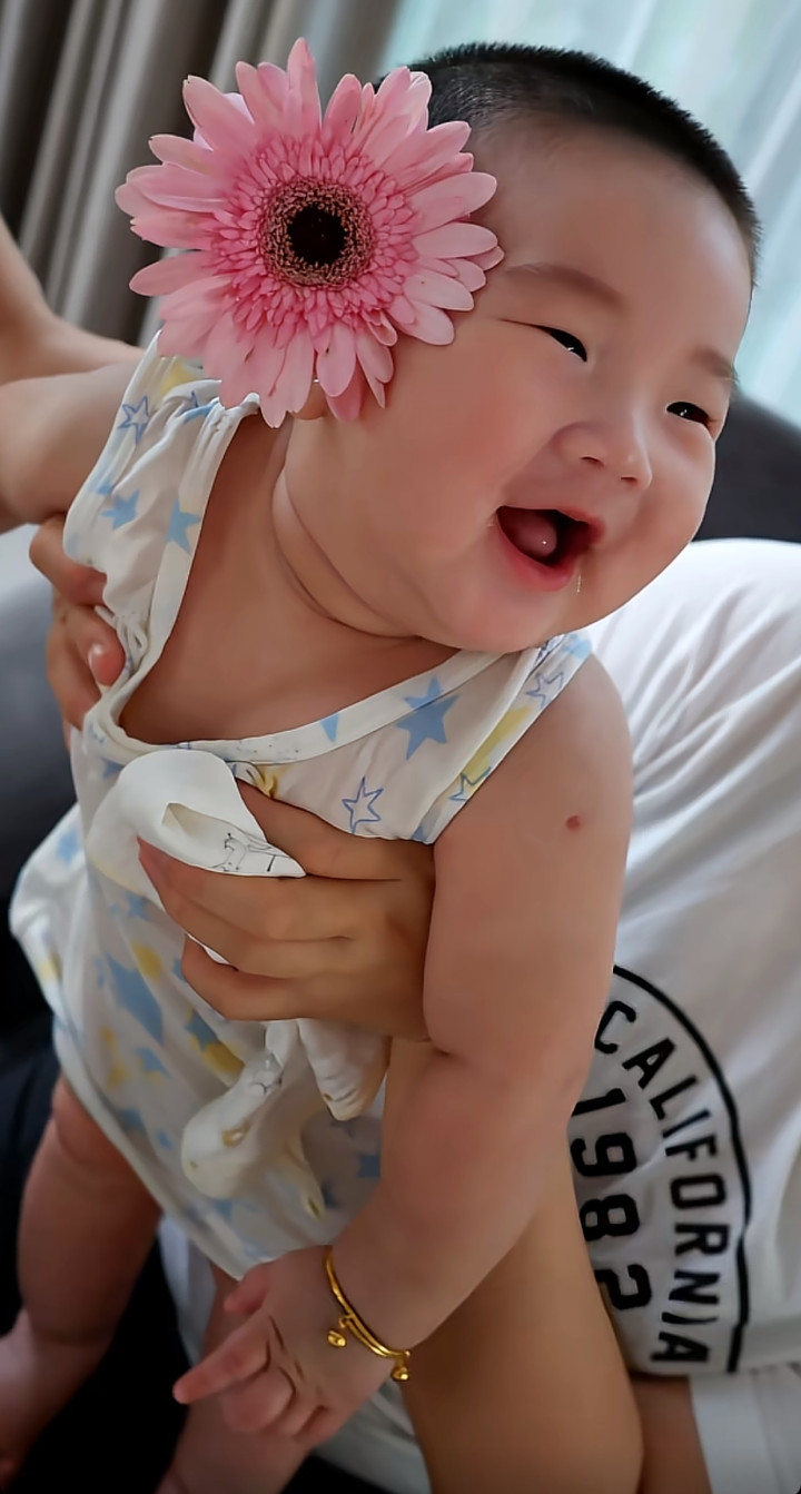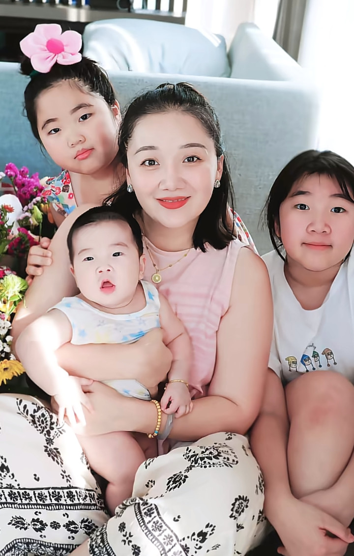 就连5个月的小女儿,也齐是白白胖胖的,脸型和五官眉眼险些与两个姐姐是相通的。