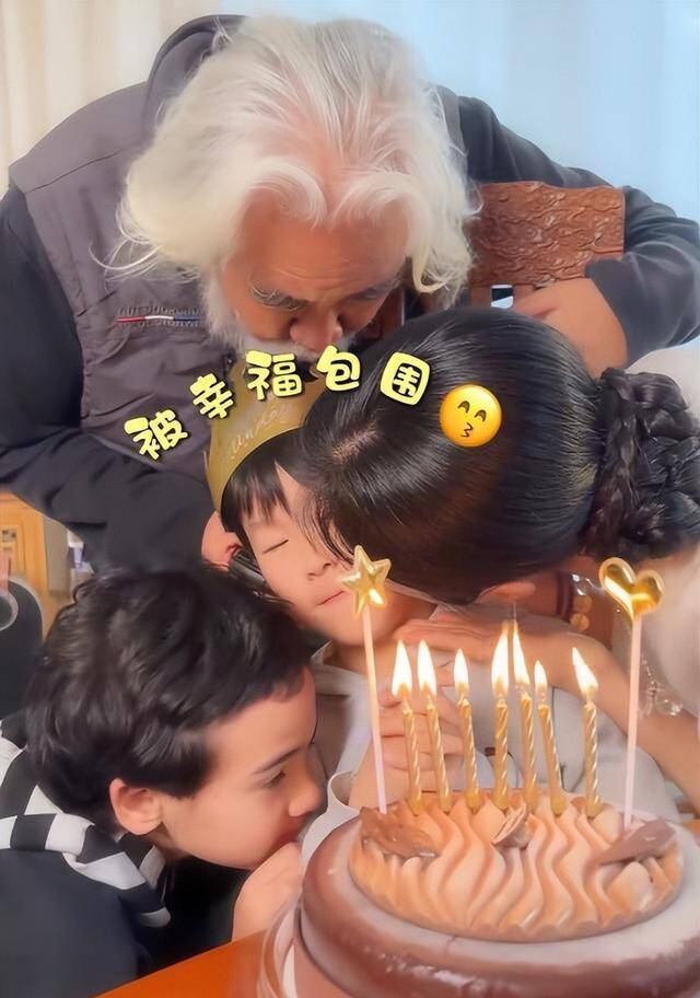 74岁的张纪中白首疏淡站在7岁女儿身边,和配头杜星霖沿途亲吻小寿星的画面看着相配温馨。