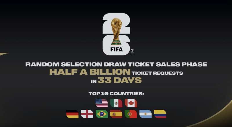 中国后生报客户端北京1月15日电(中青报·中青网记者 李梓昂)2026年寰宇杯球票“抽签恳求”阶段已于当地技艺1月13日遗弃。在为期33天的恳求窗口期内,国外足联共收到率先5亿张球票恳求。