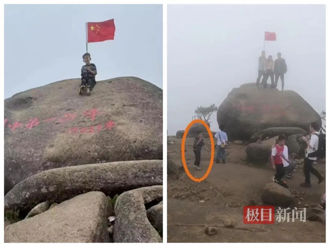 林先生发给记者的视频中,邹某樽先是举着一面小国旗,坐在写着“闽中第一岑岭 海拔1803.3米”的大石头上;自后他又在石头近邻的旷地上行走。记者对比寻东说念主信息上的相片证据,这果然是邹某樽本东说念主,衣着也和寻东说念主信息弥散吻合。