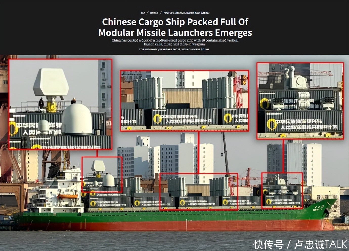 好意思“战区”网报说念称,本年圣诞的惊喜是看到一艘中型货船,它装满集装箱垂直辐照器、传感器和自保系统。中国正在明确示意,它大要、也可能会,将舰船从普遍的商船转机为不仅是射击舰,更是军火库舰。该船搭载了60个导弹垂发、两套先进犯用雷达系统、以及1130近防系统、救生筏等战舰必备建树,该船船身上还写着“中华英才海洋恢复,与东说念主类海洋气运共同体贪图”。展望该船的垂发不错搭载和辐照多款反舰导弹(包括华贵弹)、防空导弹等,合座火力建树仍是不输一艘着实的052D拆除舰。还有东说念主对比图片,这艘货船从运转改装,到改装完成仅用了不到一个月的时期。明眼东说念主看到的齐是一种恐怖的能力,那等于巨大的构兵潜能。因为这种5000~8000吨的袖珍集装箱货轮,中国一个长江边的村级造船坞就能温和造,战时按民船轨范,快速增兵 。